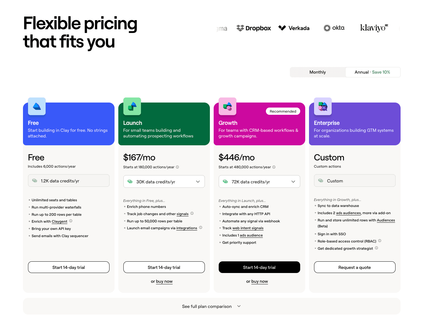 Clay announced a pricing overhaul this month. They split pricing into two axes: data credits for cost, actions for platform value. AI model costs pass through at 0% markup and data credit prices dropped 50–90%.