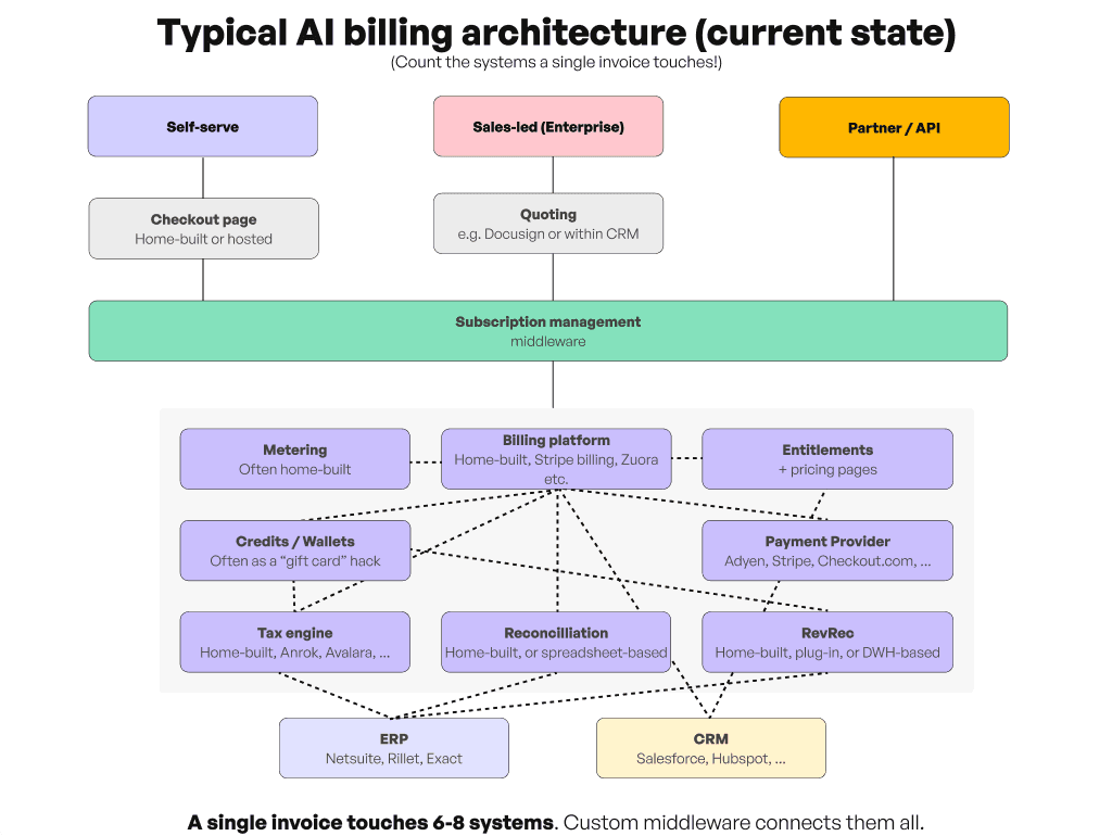 I've since had this conversation with dozens of AI companies. The architecture is different with credits instead of gift cards, model-based exchange rates instead of market pricing, usage metering instead of subscription phases, but overall still the pattern is identical. Billing complexity compounds invisibly until you're deep in it.