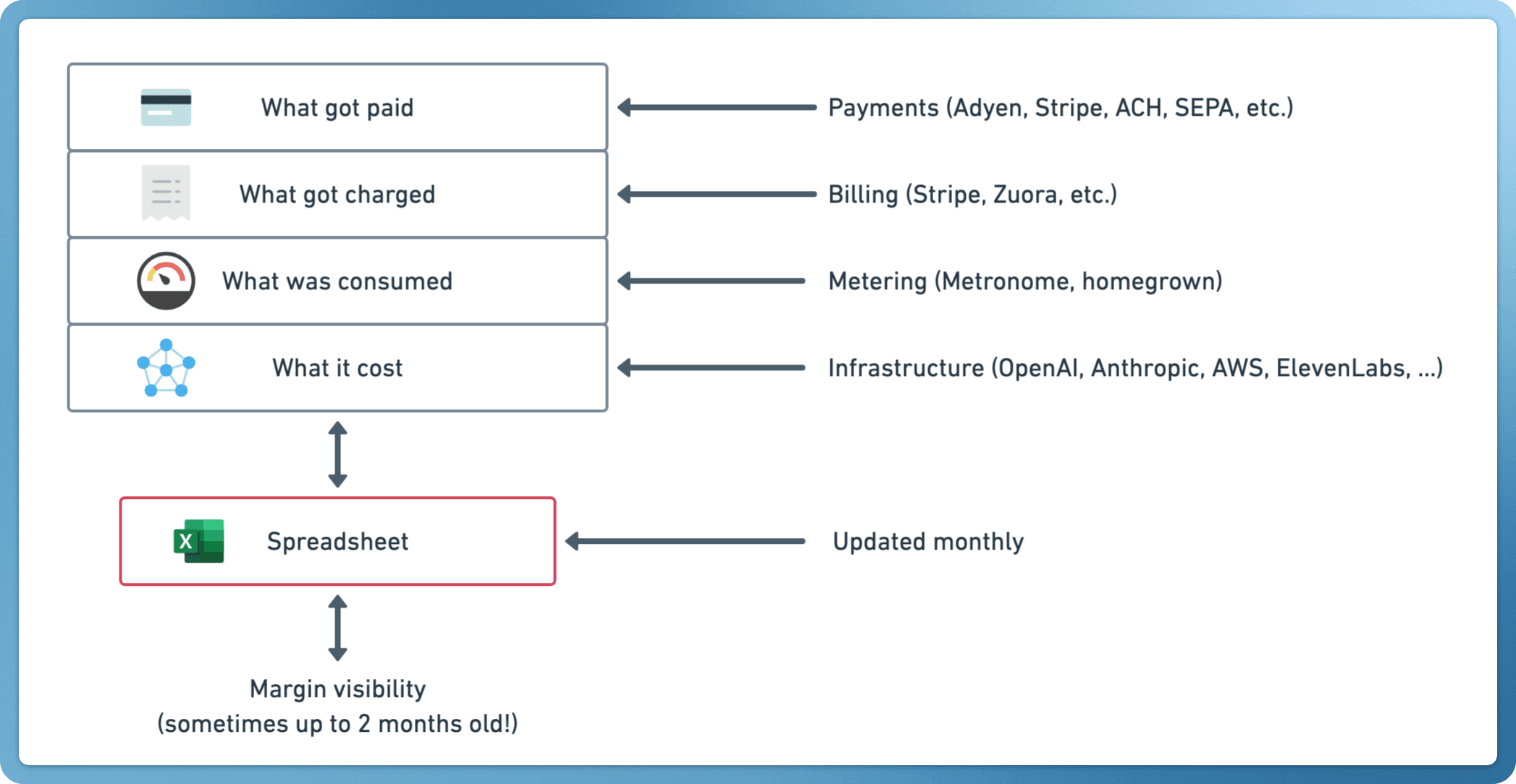 The Spreadsheet in the Middle exists because billing, metering, and cost allocation were built as separate systems. The answer isn't better integrations between them. It's one ledger. One system to rule them all 💍.