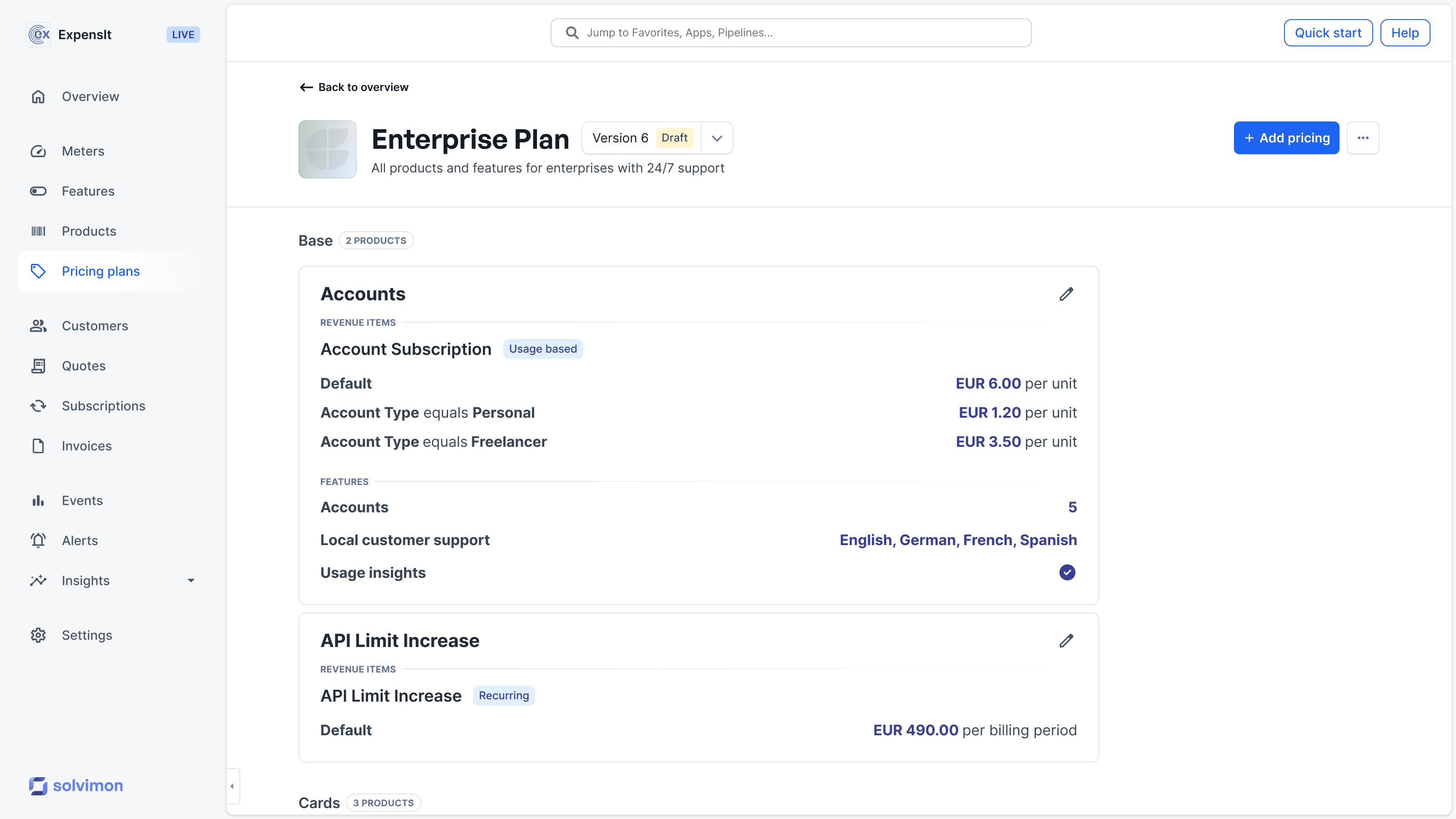 Solvimon lets you easily tie your usage events to pricing plans, specific to each customer contract.